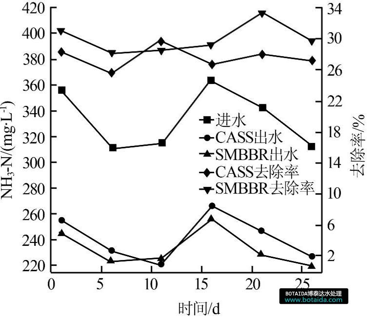 圖3 CASS和SMBBR對NH3-N的去除效果