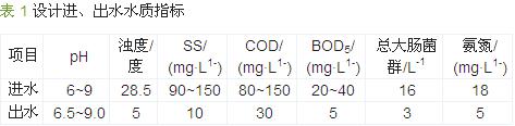 根據(jù)原水來源及出水水質(zhì)要求,確定進、出水水質(zhì)指標見表 1,設計處理水量為400 m3/d。