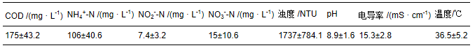 CANON工藝的啟動(dòng)階段采用人工模擬高氨氮廢水.啟動(dòng)完成后,利用某石化公司石油裂化催化劑生產(chǎn)廢水對(duì)微生物進(jìn)行馴化,廢水日產(chǎn)量約為15.6×103 m3.模擬高氨氮廢水的水質(zhì)如表 1所示(于英翠等,2012),微量元素成分見(jiàn)表 2.