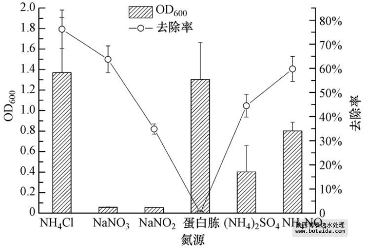 3.3.2 不同氮源對菌株ED-12的生長及除磷能力的影響