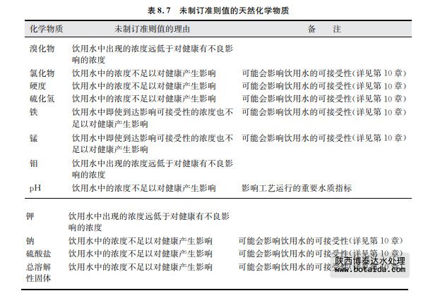 表8.8列舉了已制訂準則值的天然化學(xué)物質(zhì),這些化學(xué)物質(zhì)都符合可制訂準則標準,其 資料概覽見第12章。
