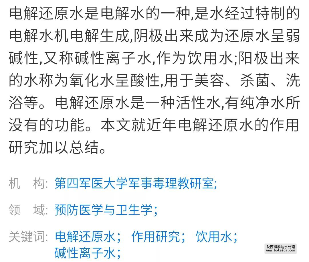 5帶負(fù)電位,可以清除體內(nèi)過氧化物,具有防病抗衰老作用?,F(xiàn)代醫(yī)學(xué)證明,過氧化物自由基是促使人體衰老,產(chǎn)生疾病的主要原因,堿性電解水帶有-1500-5000GV的負(fù)電位,可清除人體70%的自由基。