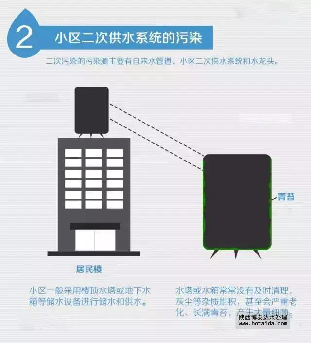 小區(qū)一般采用樓頂水塔或地下水箱等儲水設(shè)備進(jìn)行儲水和供水。而水塔或水箱常常沒有及時(shí)清理,灰塵等雜質(zhì)堆積。有的儲水設(shè)備甚至?xí)?yán)重老化、長滿青苔,產(chǎn)生大量細(xì)菌滋生。