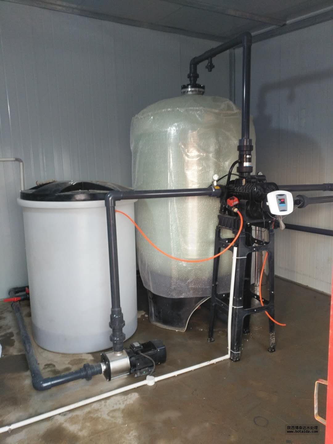 5、系統(tǒng)裝有液位控制系統(tǒng)可實現(xiàn)無人控制,軟化水箱控制采取兩位式控制方式,軟化水箱高位時自動停止設備并關(guān)閉電磁閥,系統(tǒng)自動停止運行;軟化水箱低位時自動開啟整個系統(tǒng)。