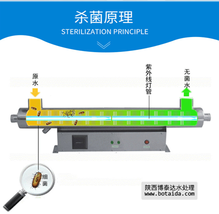 紫外線滅菌器:利用紫外線(波長200~400nm)對養(yǎng)殖用水進行消毒,殺滅水中各種病微生物。