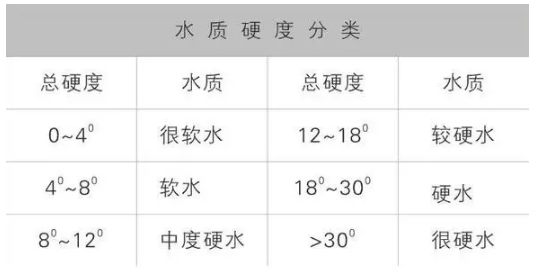 水的硬度,是指水中的鈣、鎂、鐵、鋁、錳的碳酸鹽、重碳酸鹽、氯化物、硫酸鹽及硝酸鹽等所有的鹽類(lèi)的含量,并常含有汞、鎘、砷、鉛等少量的有害元素。水的硬度單位通常是將水中的全部鹽類(lèi)換算為碳酸鈣來(lái)計(jì)量。當(dāng)水中的硬度以碳酸鈣計(jì)小于150毫克/升時(shí),稱(chēng)為軟水;150—450毫克/升時(shí),稱(chēng)為硬水;450—714毫克/升時(shí)為高硬水;大于714毫克/升時(shí)為特硬水。國(guó)家生活飲用水硬度的衛(wèi)生標(biāo)準(zhǔn)為小于450毫克/升(以碳酸鈣計(jì))。